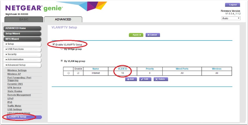 5. Click Advanced Setup > VLAN/IPTV Setup