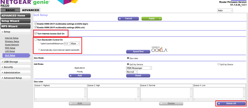 - Under Advanced -> Setup -> QoS Setup