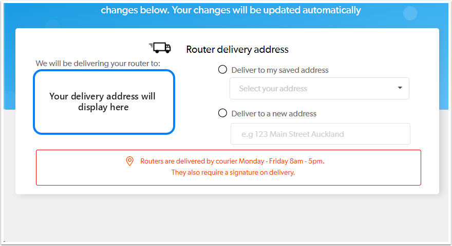- The router delivery address options will show each time you log in until the router is dispatched.
